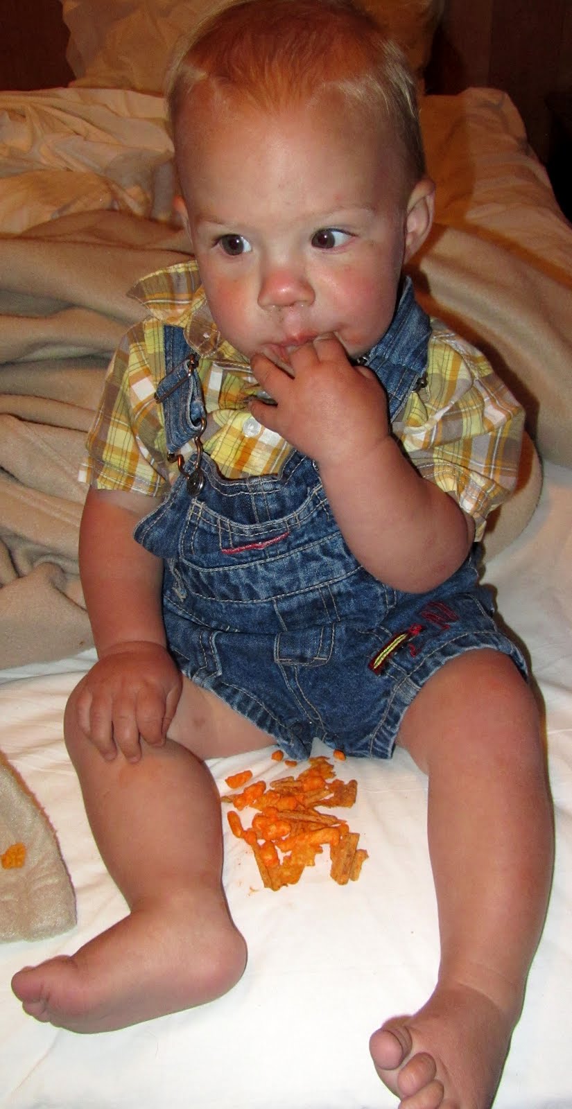 i know what you’re thinking… who feeds their kid cheesies? on the bed? on white sheets? and cupcakes? at bedtime, really?