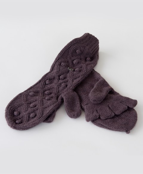 Nesting Mittens from The Noonday Collection: Cute pom pom details in plum color; pull back the mitten when you’re typing or need to make a phone call.