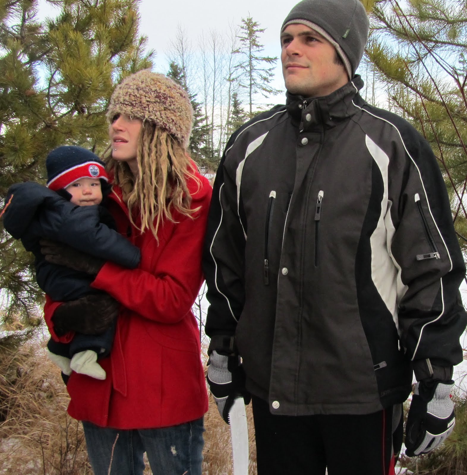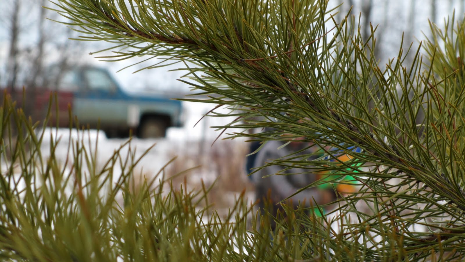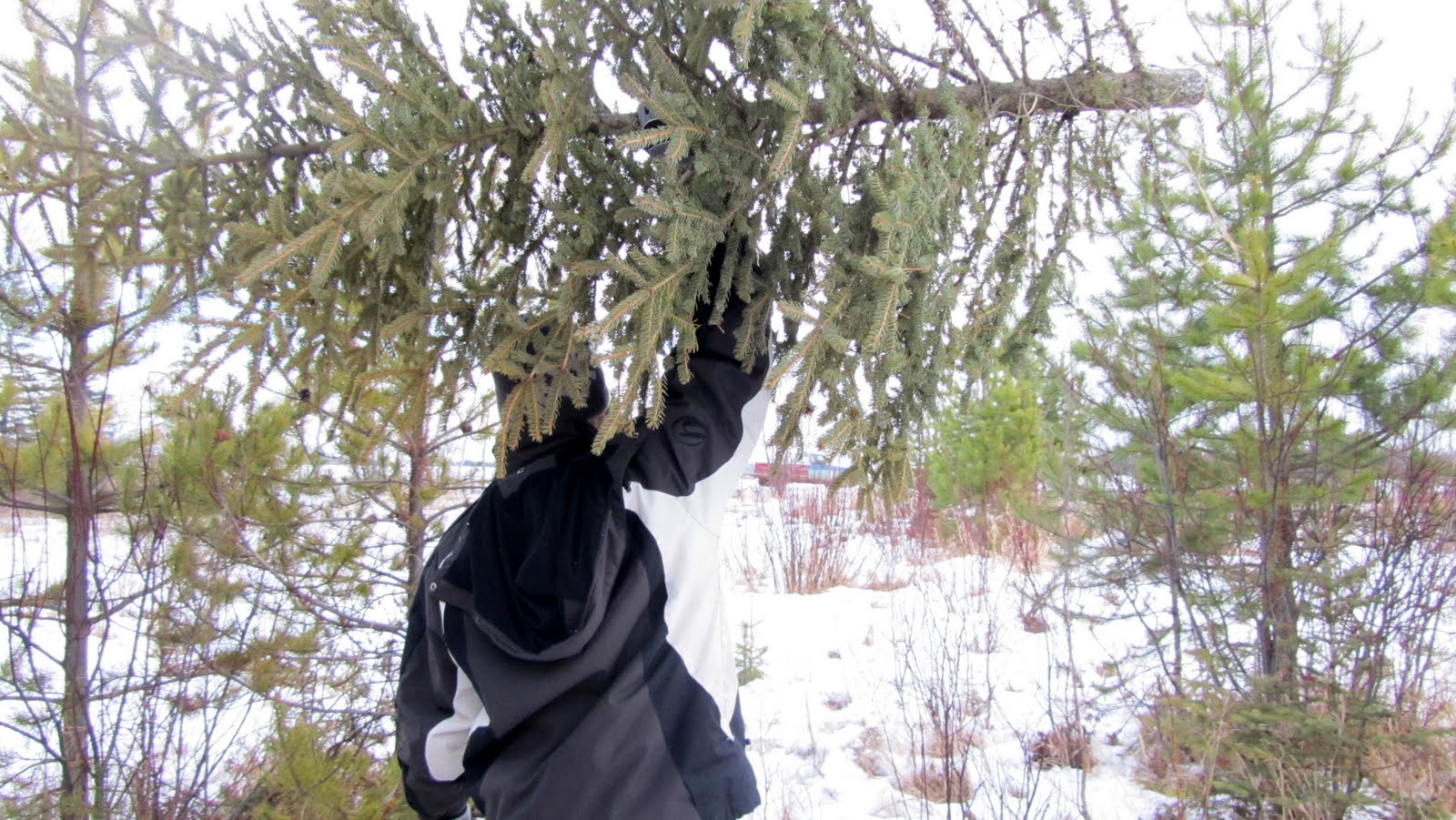 and we drive to oma and opa’s and get the old blue and red farm truck, the one no one would steal for its color and oma brings hot chocolate and we drive down the road and park, pile into the bush and aiden drinks hot chocolate with opa while trent and i find a tree.