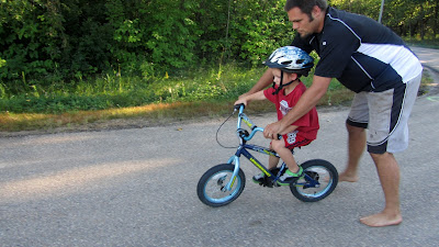 Aiden asked us to remove his training wheels this week. He’s three and a half and he’s growing weed-like and it scares me, but we took the wheels off.