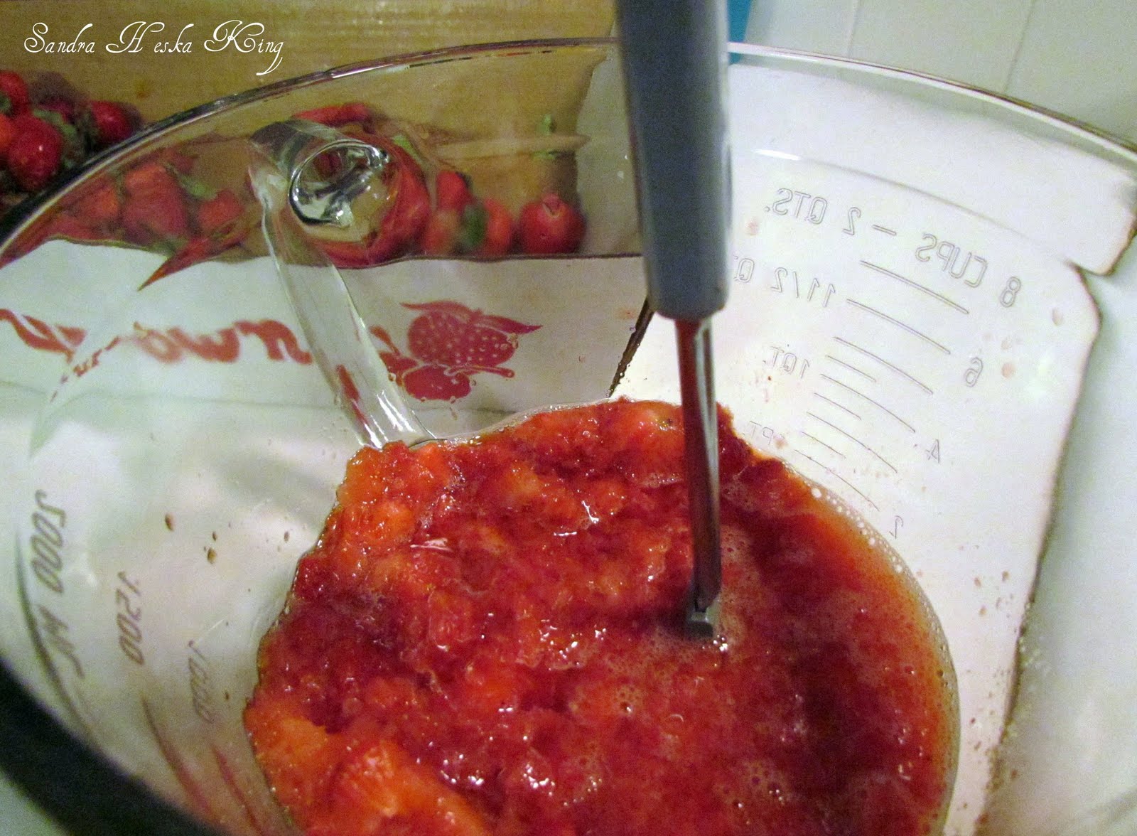 I love the jeweled color of strawberries mashed in the making.