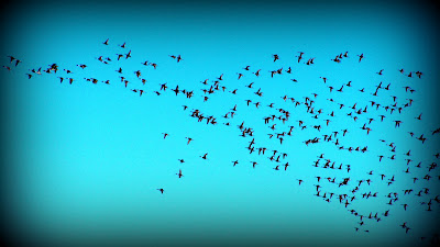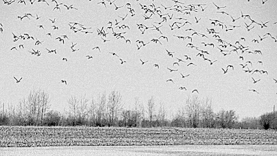 the birds have descended. flocking to fields filled with water, and when they rise their wings sound like hundreds of blankets being aired out in the breeze.