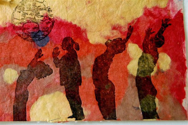 There are candles on the tables and the room is dimly lit, pillows along the wall and chairs with women, bent over their journals or over their hands, some sobbing and others just writing.